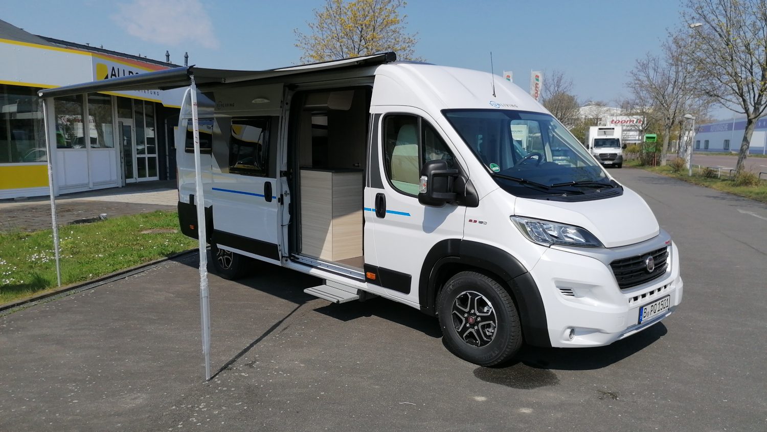 Die Standheizung und der beheizte Abwassertank hält das Wohnmobil auch bei Minusgraden betriebsbereit, sodass auch winterliche Wohnmobiltouren mit dem Fiat Ducato Sun Living kein Problem sind. Im Sommer entspannt es sich am besten unter der Markise, die in kürzester Zeit auf- bzw. abgebaut werden kann.
